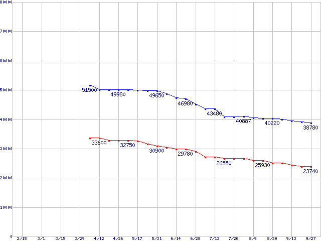 Deskstar T7K500 (7200rpm,SATA 3Gb/s)の最安値推移