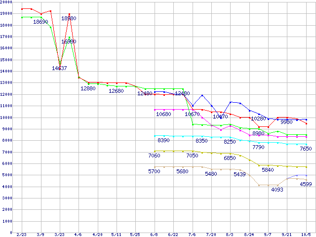 CPU主要製品(最安値1万円~2万円未満)の最安値推移