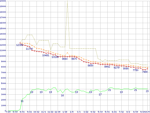| HDT725032VLAT80 (320GB,8MB)の価格推移 | | | (2006年7月20日~2007年10月4日) |