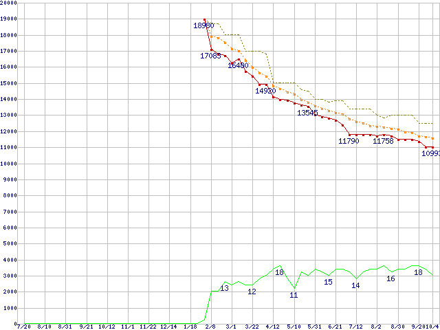 | WD5000AAKS (500GB)の価格推移 | | | (2006年7月20日~2007年10月4日) |
