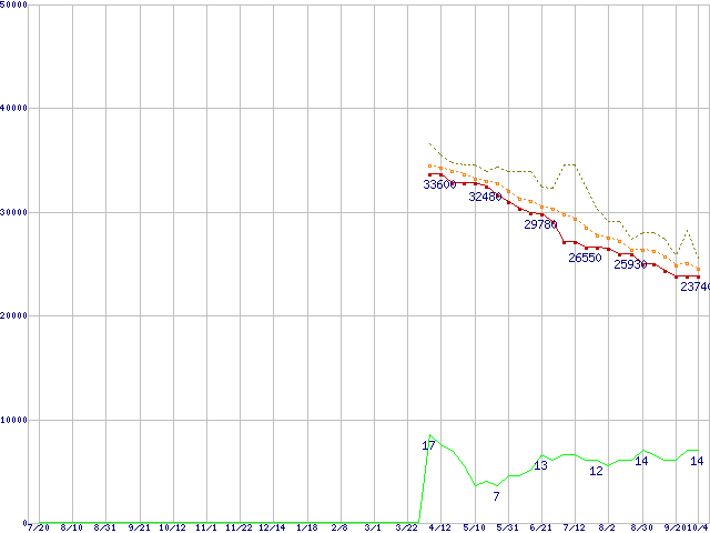 | HDS721075KLA330 (750GB,32MB)の価格推移 | | | (2006年7月20日~2007年10月4日) |
