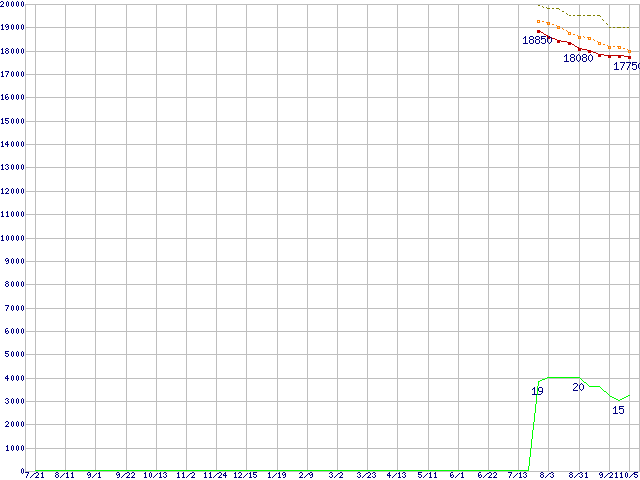 | Core 2 Duo E4500 (2.20GHz,L2 2MB)の価格推移 | | | (2006年7月21日~2007年10月5日) |