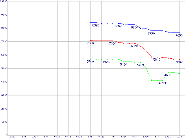 LGA771(FSB 1066MHz,Quad Core,L2 4MB×2)の最安値推移
