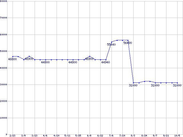 LGA771(FSB 1333MHz,Quad Core,L2 4MB×2,TDP 120W)の最安値推移