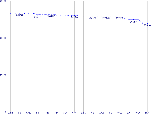 WD Raptor (10000rpm,SATA 1.5Gb/s,16MB,NCQ)の最安値推移