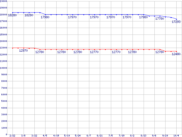 WD Raptor (10000rpm,SATA 1.5Gb/s,16MB,NCQ)の最安値推移