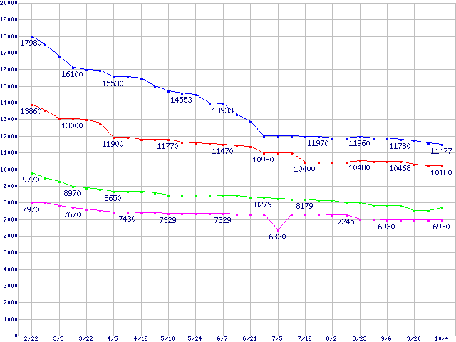 Deskstar 7K160 (7200rpm,Ultra ATA/133,8MB)の最安値推移