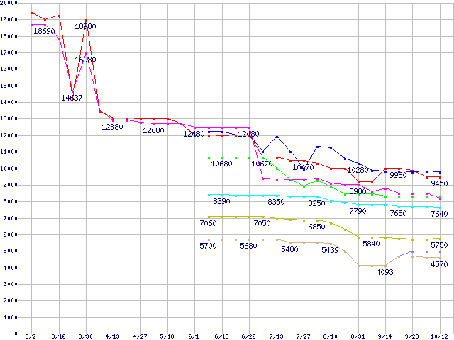 CPU主要製品(最安値1万円~2万円未満)の最安値推移