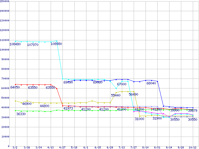 CPU主要製品(最安値3万円~6万円未満)の最安値推移