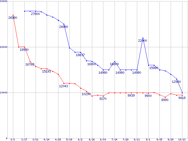 ※点線部は販売店が確認できなかった、または調査データがないことを示します