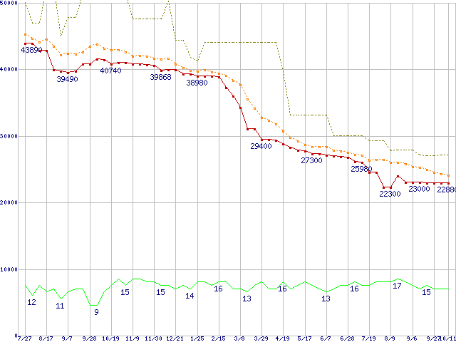| ST3750640AS (750GB,16MB)の価格推移 | | | (2006年7月27日~2007年10月11日) |