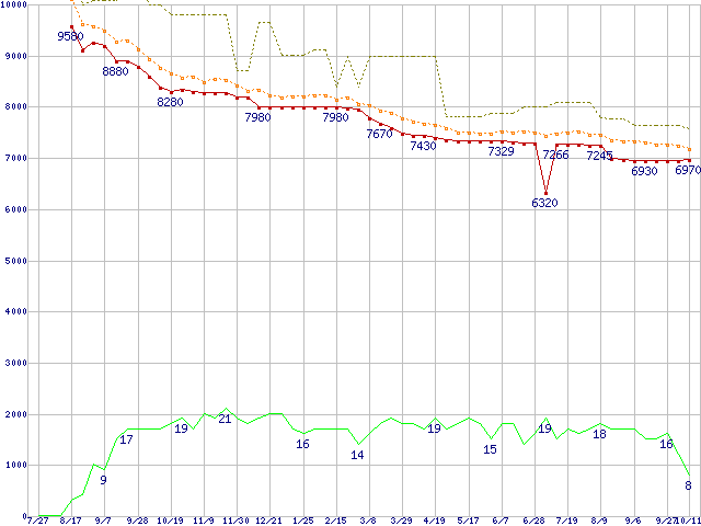 | HDT725025VLAT80 (250GB,8MB)の価格推移 | | | (2006年7月27日~2007年10月11日) |
