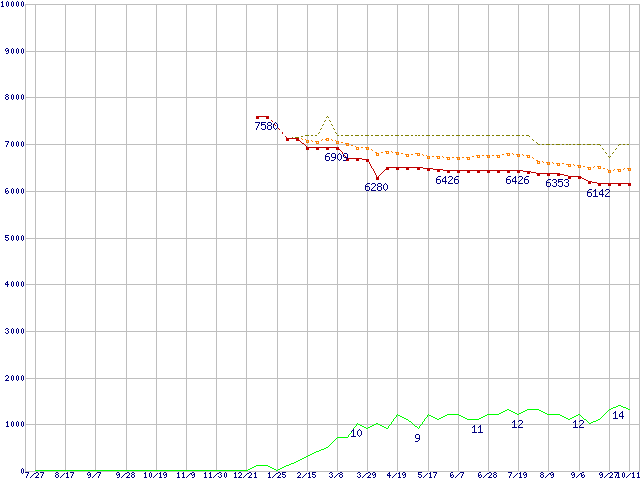 | ST3160815AS (160GB,8MB)の価格推移 | | | (2006年7月27日~2007年10月11日) |