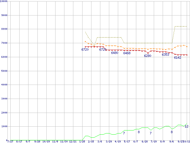 | ST3160815A (160GB,8MB)の価格推移 | | | (2006年7月27日~2007年10月11日) |