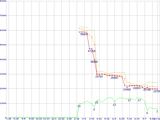 | Athlon 64 X2 6000+ (3.0GHz,L2 1MB×2)の価格推移 | | | (2006年7月28日~2007年10月12日) |