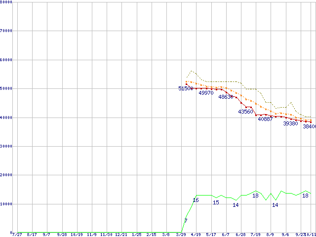 | HDS721010KLA330 (1TB,32MB)の価格推移 | | | (2006年7月27日~2007年10月11日) |