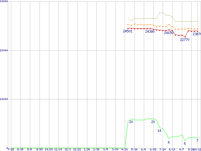 | Core 2 Duo E6420 (2.13GHz,L2 4MB)の価格推移 | | | (2006年7月28日~2007年10月12日) |