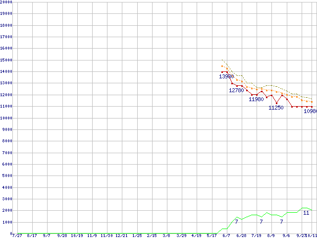 | WD5000AAJB (500GB)の価格推移 | | | (2006年7月27日~2007年10月11日) |