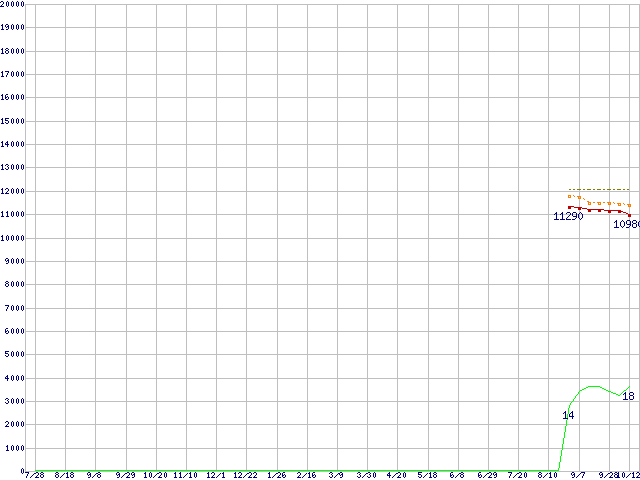 | Pentium Dual-Core E2180 (2.0GHz)の価格推移 | | | (2006年7月28日~2007年10月12日) |