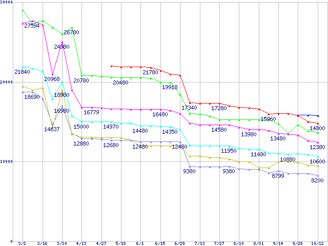 | Socket AM2 (FSB 1000MHz,Dual Core,TDP65W)の最安値推移 | | | (2007年3月2日~2007年10月12日) |
