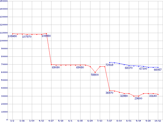 LGA775 (FSB 1333MHz,Dual Core,EM64T対応,TDP 65W)の最安値推移