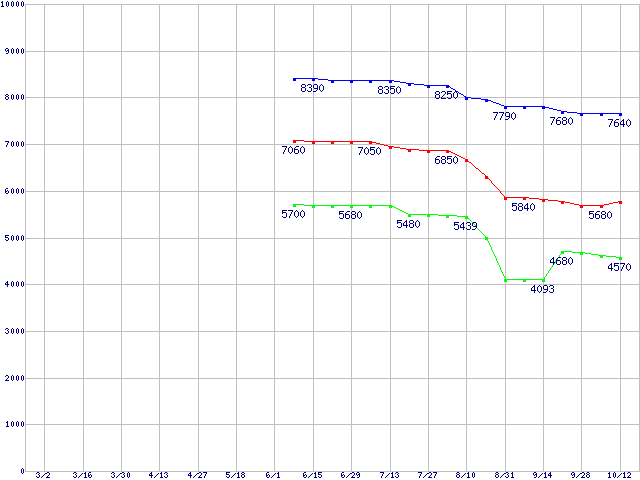 LGA771(FSB 1066MHz,Quad Core,L2 4MB×2)の最安値推移