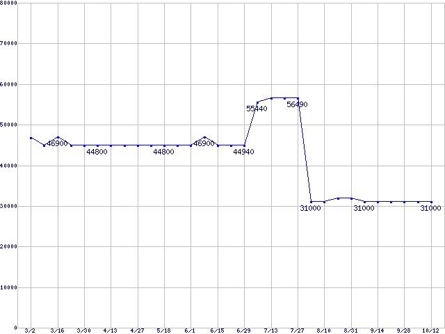 LGA771(FSB 1333MHz,Quad Core,L2 4MB×2,TDP 120W)の最安値推移