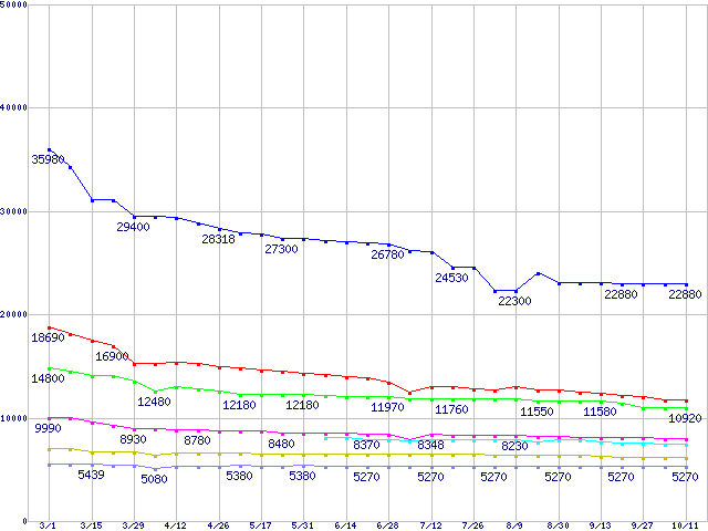 Barracuda 7200.10 (7200rpm,SATA 3Gb/s)の最安値推移