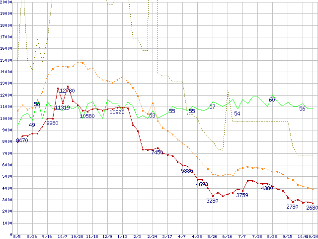 PC2-5300(DDR2-667) DDR2 SDRAM DIMMの最安値推移