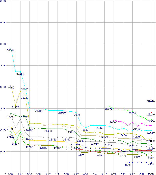 ※製品名をクリックすると個別のグラフを表示します ※点線部は販売店が確認できなかった、または調査データがないことを示します |