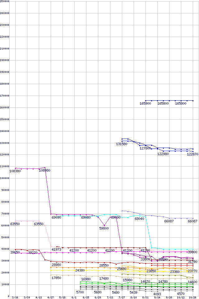 | Intel系CPUの最安値推移 | | | (2007年3月16日~2007年10月26日) |