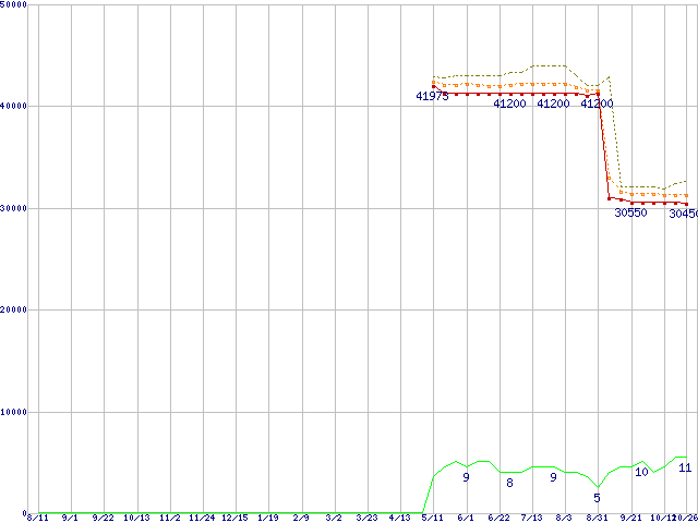 | Core 2 Duo T7500 (2.2GHz,L2 4MB)の価格推移 | | | (2006年8月11日~2007年10月26日) |