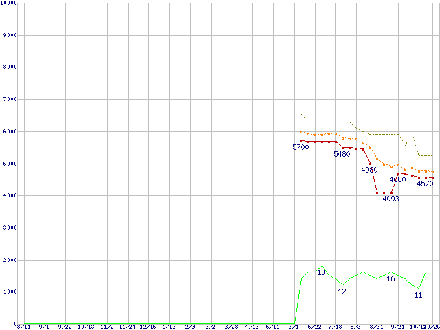 | Celeron 420 (1.6GHz)の価格推移 | | | (2006年8月11日~2007年10月26日) |