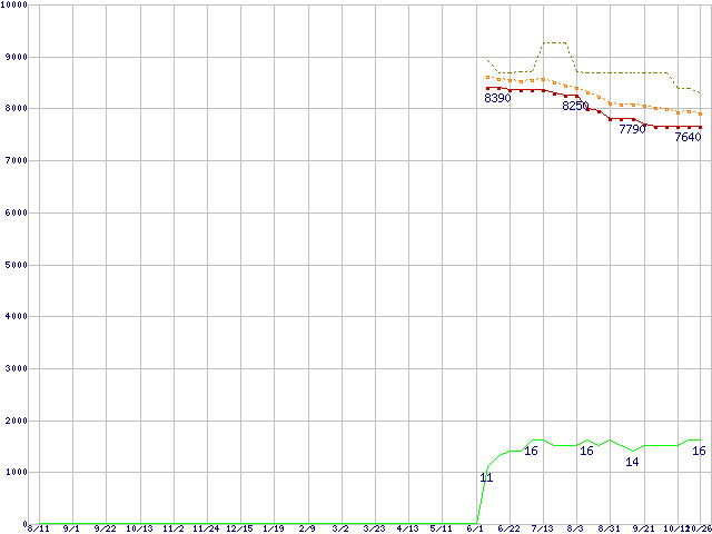 | Celeron 440 (2.0GHz)の価格推移 | | | (2006年8月11日~2007年10月26日) |