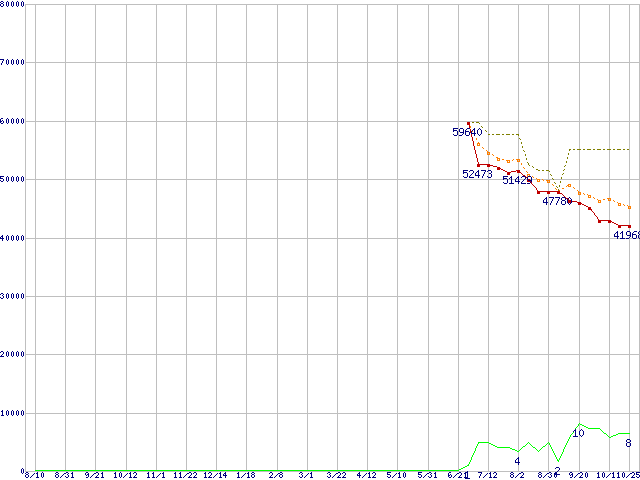 | HUA721010KLA330 (1TB,32MB)の価格推移 | | | (2006年8月10日~2007年10月25日) |