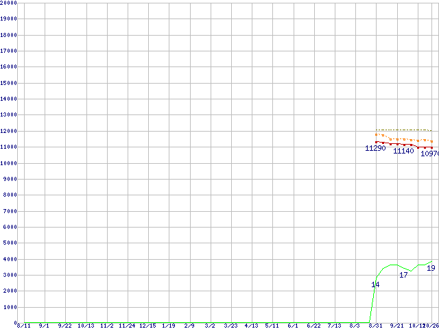 | Pentium Dual-Core E2180 (2.0GHz)の価格推移 | | | (2006年8月11日~2007年10月26日) |