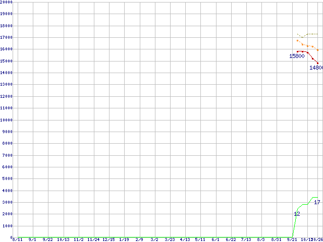 | Athlon 64 X2 5000+ Black Edition (2.6GHz,L2 512KB×2,TDP65W)の価格推移 | | | (2006年8月11日~2007年10月26日) |