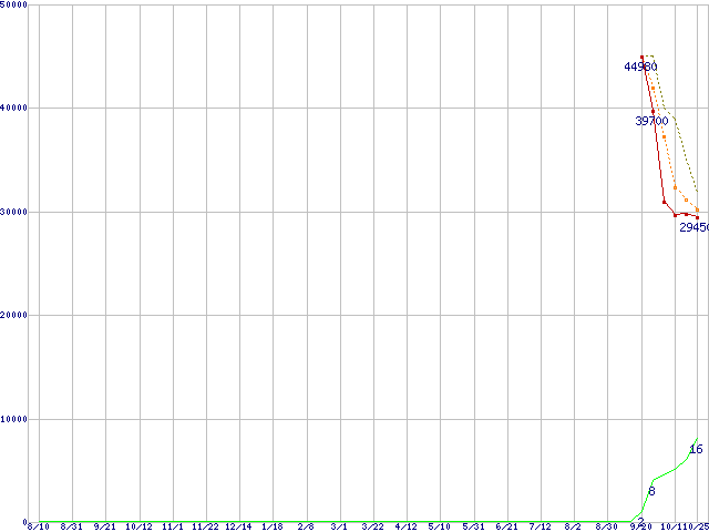 | WD10EACS (1TB,16MB)の価格推移 | | | (2006年8月10日~2007年10月25日) |