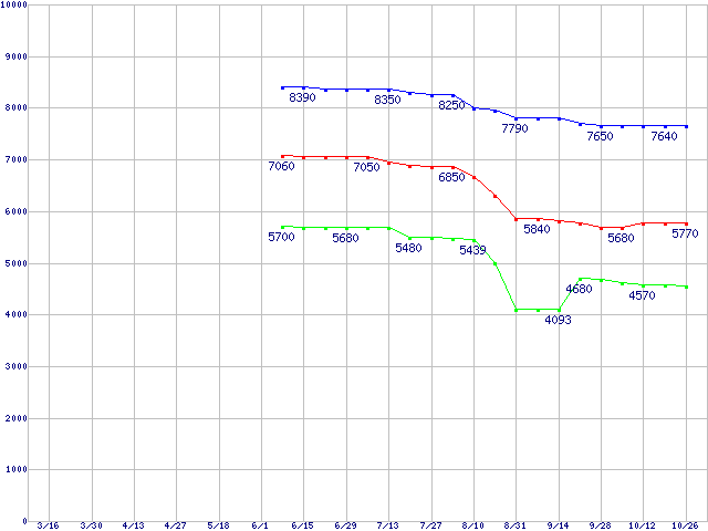 LGA771(FSB 1333MHz,Quad Core,L2 4MB×2,TDP 120W)の最安値推移
