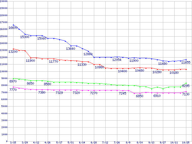 Deskstar 7K160 (7200rpm,SATA 3Gb/s)の最安値推移