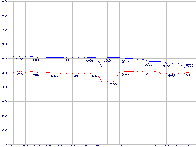 Deskstar T7K500 (7200rpm,SATA 3Gb/s)の最安値推移