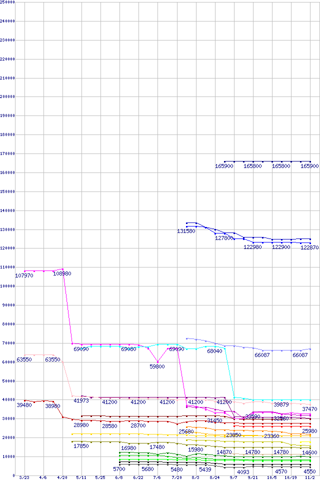 ※製品名をクリックすると個別のグラフを表示します ※点線部は販売店が確認できなかった、または調査データがないことを示します |