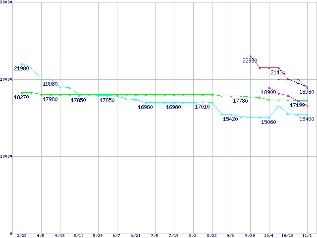 HDD主要製品(最安値1万5千円~2万円未満)の最安値推移