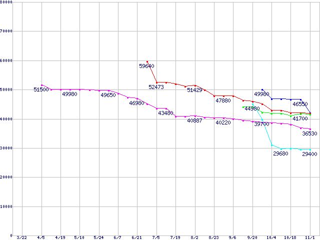 HDD主要製品(最安値1万円未満)の最安値推移