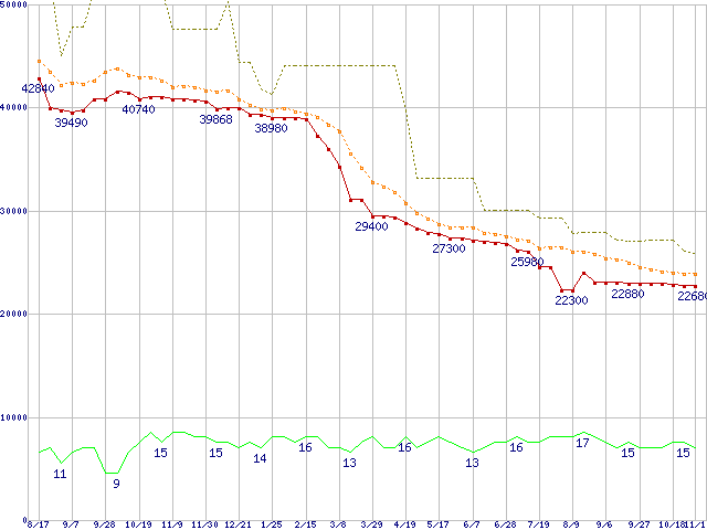 | ST3750640AS (750GB,16MB)の価格推移 | | | (2006年8月17日~2007年11月1日) |