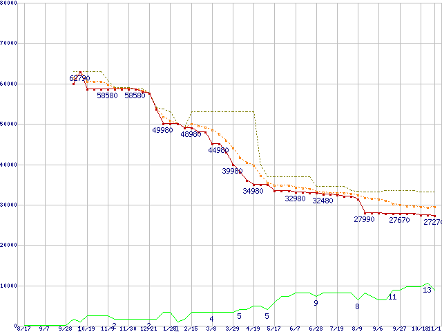 | ST3750640NS (750GB,16MB)の価格推移 | | | (2006年8月17日~2007年11月1日) |