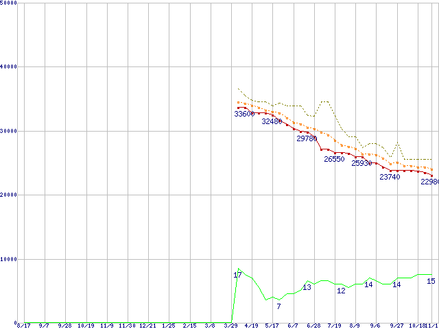 | HDS721075KLA330 (750GB,32MB)の価格推移 | | | (2006年8月17日~2007年11月1日) |