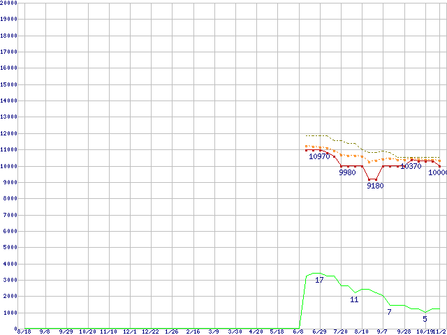 | Athlon X2 BE-2300 (1.9GHz,L2 512KB×2,TDP 45W)の価格推移 | | | (2006年8月18日~2007年11月2日) |