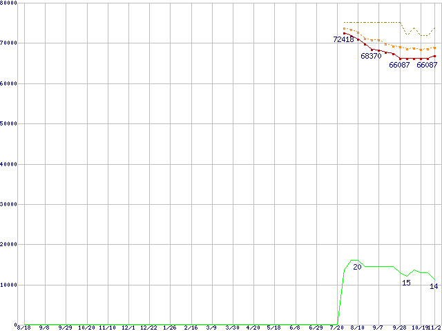| Core 2 Quad Q6700 (2.66GHz,L2 4MB×2)の価格推移 | | | (2006年8月18日~2007年11月2日) |
