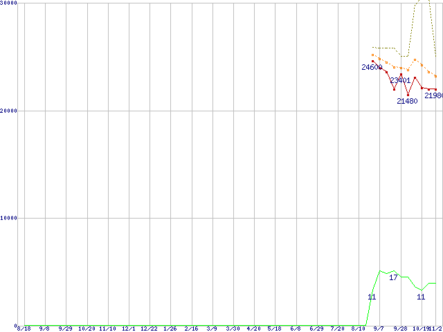 | Athlon 64 X2 6000+ (3.0GHz,L2 1MB×2,TDP 89W)の価格推移 | | | (2006年8月18日~2007年11月2日) |